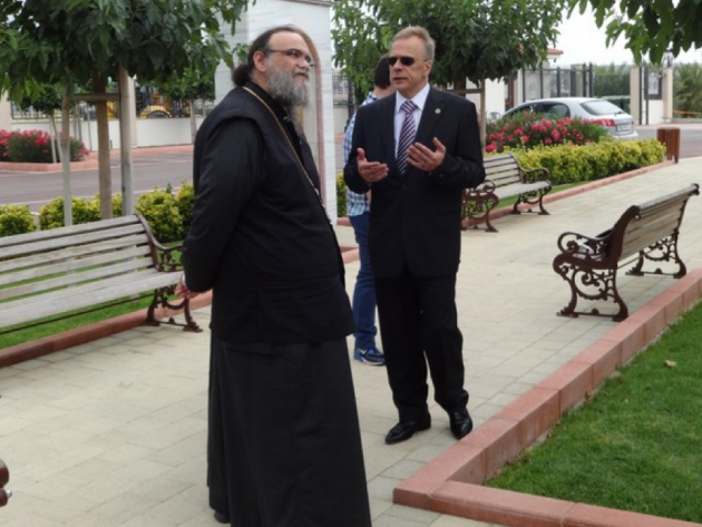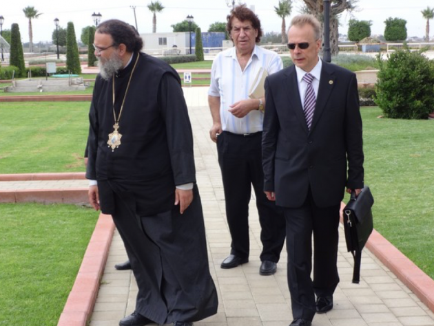 Владыка Исаия и председатель Кипрского отделения ИППО Леонид Буланов осмотрели территорию Тамасосской митрополии и договорились о следующей встрече.