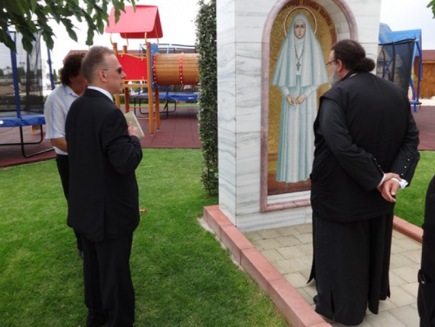 После торжественного обеда митрополит Тамасосский Исаия и председатель Кипрского отделения ИППО Леонид Буланов прошли к мозаичной иконе святой Елисаветы, расположенной на аллее Всех Святых, в земле Русской просиявших, которая находится около храма Андрея Первозванного.