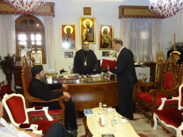 Митрополита Исаию сопровождали архимандрит Серафим (Гавриков) и архитектор Андреас Муктарис.
