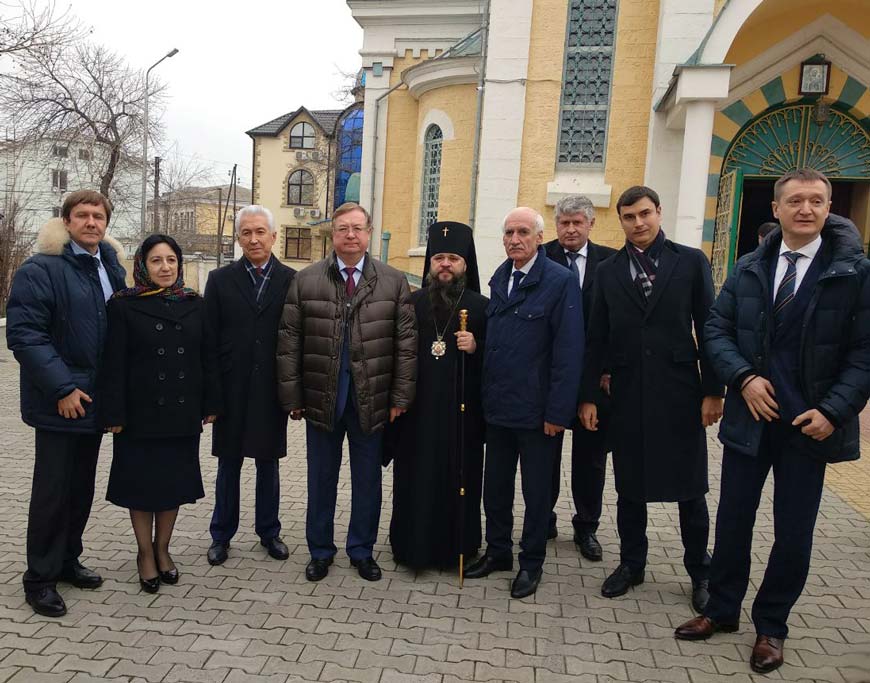 Сергей Степашин вместе с Владимиром Васильевым посетили Свято-Успенский кафедральный собор, являющийся главным православным храмом Республики Дагестан. В 2012 году, в связи с образованием самостоятельной Махачкалинской епархии, этот собор стал кафедрой её епископа Варлаама, который рассказал гостям об истории храма.
