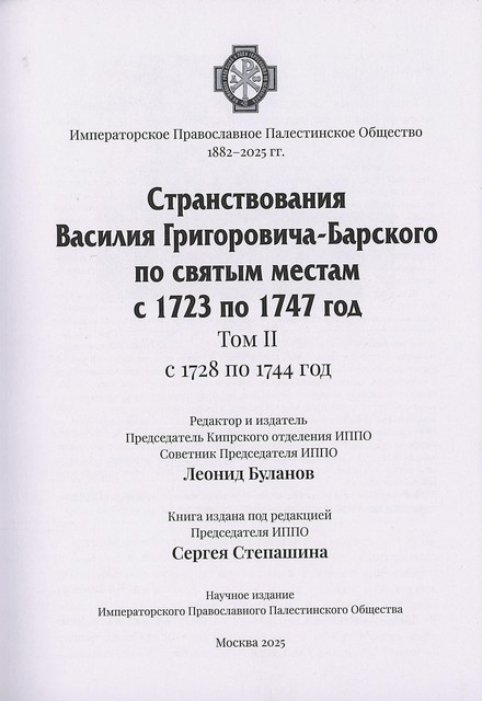 Вышел в свет второй том книги «Странствования Василия Григоровича-Барского по святым местам с 1723 по 1747 год»