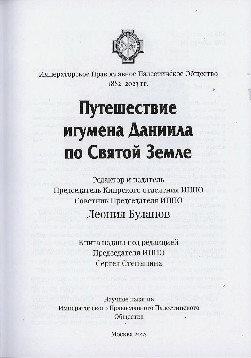 Вышла в свет книга «Путешествие игумена Даниила по Святой Земле» под редакцией руководителя Кипрского отделения ИППО Леонида Буланова