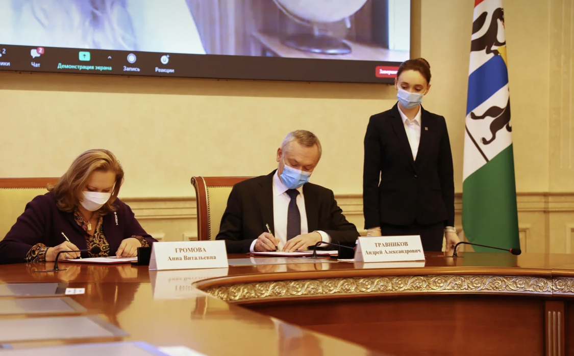 Церемония подписания соглашения о сотрудничестве Правительства Новосибирской области, Федерального агентства по туризму РФ, Фонда содействия возрождению традиций милосердия и благотворительности «Елисаветинско-Сергиевское просветительское общество» состоялась 19 ноября. Подписи под документом поставили губернатор Андрей Травников, руководитель Федерального агентства по туризму РФ Зарина Догузова (в режиме ВКС), Председатель Наблюдательного совета Фонда "Елисаветинско-Сергиевское просветительское общество", заместитель Председателя ИППО Анна Громова в присутствии митрополита Новосибирского и Бердского Никодима.