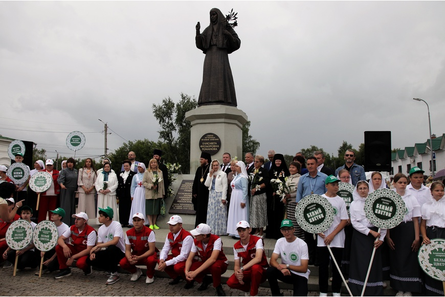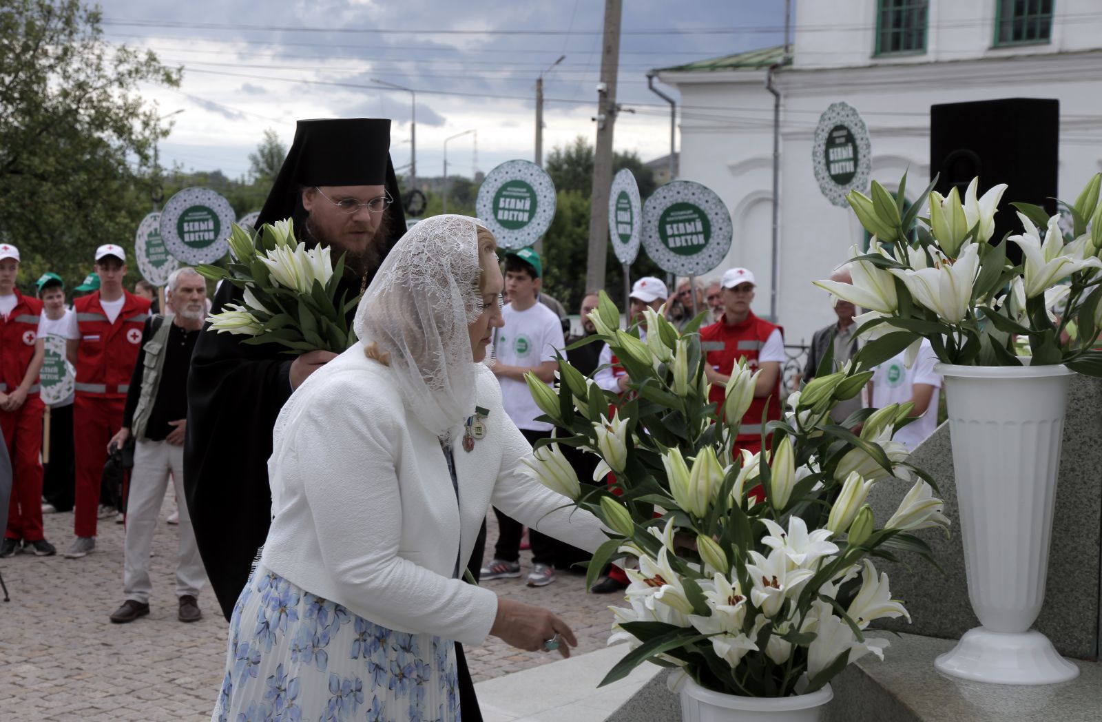 После молебна челябинцы приняли участие в шествии волонтёров и участников Дней благотворительности «Белый цветок» во главе с организаторами и почётными гостями от Напольной школы (место содержания арестованных Романовых в 1918 году) до Свято-Троицкого кафедрального собора, где в 1919 году отпевали восемь погибших от рук большевиков князей Романовых, двух слуг и Великой Княгини Елизаветы Фёдоровны .