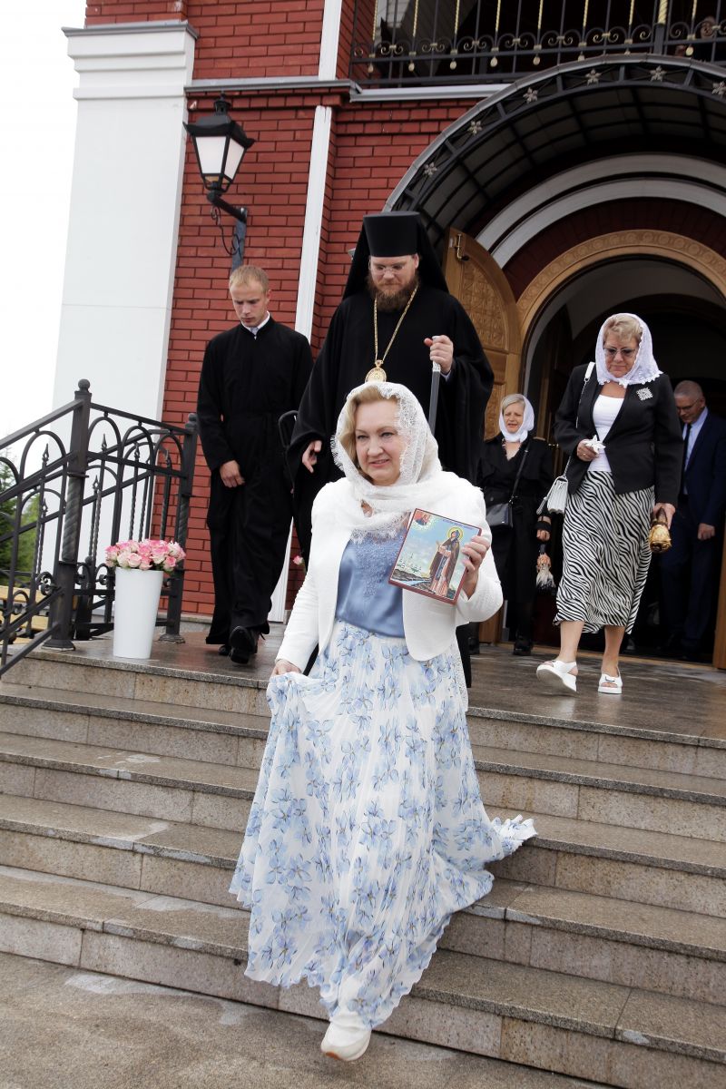 В этот день мы участвовали в молебне на начало всякого доброго дела в храме во имя прмц. Елизаветы Феодоровны в женском монастыре Алапаевска. После молебна была исполнена наша миссия: мы подарили Анне Витальевне список иконы благоверной Анны Кашинской, тверской княгини, начала XX века, после второй канонизации 1909 года. Исполнение иконописца Владимира Михайлова (Челябинск), при поддержке Андрея Белопухова. Когда Анна Громова принимала икону, она прошептала, что именно этот список благоверной Анны Кашинской снился ей накануне ночью…