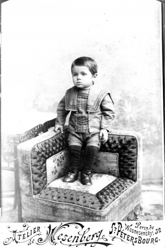 Это свидетельство о крещении моего деда Александра. Я знала, что его мать Елена Георгиевна (в девичестве Капица) была чистокровной гречанкой и переехала со своей семьей в конце XIX века из Афин в Константинополь, из Константинополя в Одессу, а позднее вместе с мужем и дочерью Евгенией в Санкт-Петербург. Фамилия Пападопуло-Керамевс была весьма выразительна даже для грека. Ну, раз потомственный гражданин, подумала я, то наверняка можно что-то о нем поискать в интернете. Интересно: кто таков? Можете представить мое удивление, когда с первого же клика на экране монитора передо мной предстал красивый, статный пожилой мужчина с седой бородой, историк-эллинист, византолог. Я стала вспоминать бабушкины рассказы о близких и далеких родственниках, запечатленных на фотографиях конца XIX - начала XX века. Фотографии хранились в очень большом старинном альбоме и представляли собой декорированные картонки. На оборотной стороне каждой из них была, как мы сегодня бы сказали, визитная карточка с указанием фамилии хозяина ателье, города, адреса и даже телефона. На одной из таких фотографий, сделанной в Одессе, в ателье Готлиба (угол Гаваной и Ланжероновской, дом № 9/21), изображена моя прабабушка - Масленникова Елена Георгиевна (далее Е.Г.). Фото сделано в Одессе еще до ее переезда в Санкт-Петербург. Юная хорошенькая девушка, с вздернутым носиком, высокой прической (фото 2). Здесь ей лет 15, по моим подсчетам. На другой фотографии, более поздней, сделанной в ателье Везенберга по адресу улица Вознесенская, дом 32 в Санкт-Петербурге в 1905 году, Е.Г. уже взрослая женщина, полная, статная, в шляпе с пером и зонтиком. Весьма представительна (фото - 3). Рядом две фотографии ее детей: на первой - сын Александр (примерно около 2х лет) и старшая дочь Женя (лет семи в школьной форме). На второй - маленький Саша стоит в кресле (фото 4-5).