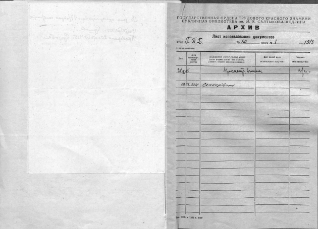 Поэтому, обнаружив неожиданно для себя того самого профессора, с которым моя прабабка выходила «на балы» (теперь-то я понимаю, каким заблуждением было представление о ее легкомыслии), и узнав из публикаций о нем, что он был библиотекарем в Публичной библиотеке, я списалась с сотрудниками отдела рукописей и поехала на встречу в Санкт-Петербург.