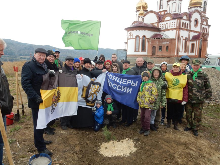 Заложили аллею в неслучайном месте – на территории храма Новомученников и Исповедников Российских, который расположен в удивительно красивом месте – на берегу могучей сибирской реки Енисей. Событие было приурочено к трём памятным датам: 150-летию со дня рождения страстотерпца Императора Николая II, 120-летию КРО ИППО и 80-летию Российского центра защиты леса.