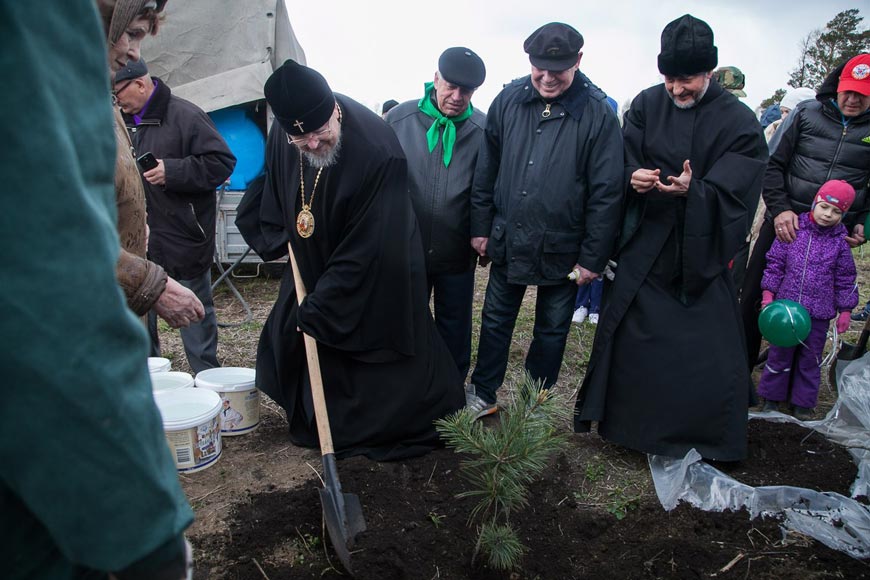 Вместе с митрополитом, членами ИППО, Красноярского дворянского собрания, Красноярского регионального отделения «Офицеры России» и представителей Министерства лесного хозяйства Красноярского края, КГАУ «Лесопожарного центра Красноярского края», Института леса им. В. Н. Сукачёва СО РАН, СибГУ имени М. Ф. Решетнёва, КРОО «Общества лесоводов», КРОО «Ассоциации ветеранов лесных отраслей», АО «Краслесинвест», КГБ ПОУ «Дивногорский техникум лесных технологий», а также начальника департамента лесного хозяйства Томской области М. В. Малькевича саженцы деревьев в землю высадили прихожане храма Новомучеников и Исповедников Российских.