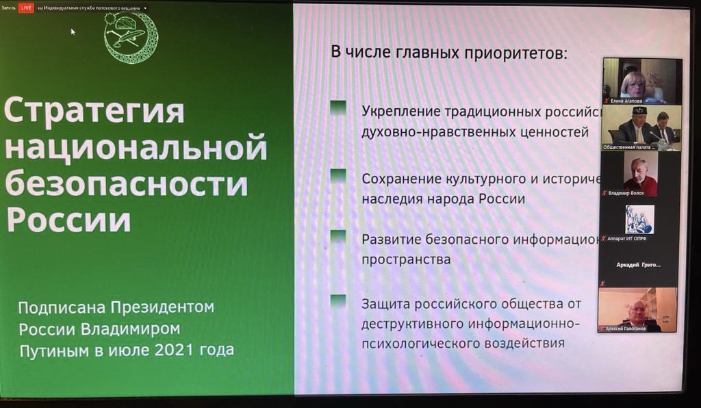 Участники слушаний обсудили положения новой Стратегии национальной безопасности России, нацеленной на защиту духовно-нравственных ценностей, нашей истории и традиций (принята Указом Президента РФ от 2 июля 2021 года №400), а также вопросы, связанные с предстоящим проведением в Москве в мае 2022 года Всемирной конференции по межрелигиозному и межэтническому диалогу. Был представлен мониторинг ситуации с духовной безопасностью в молодежной среде, образовании, культуре, международных и межнациональных отношениях.