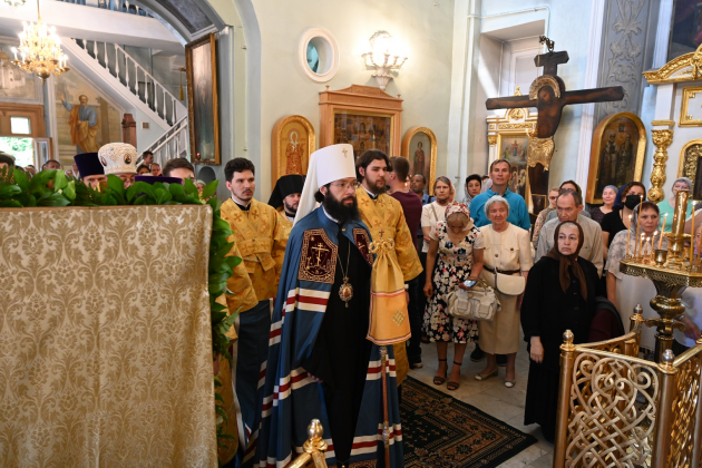 По завершении Литургии молебен святому Архангелу Гавриилу был совершен под открытым небом во дворе храма.