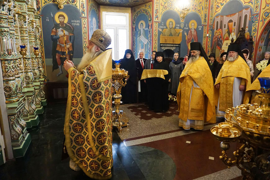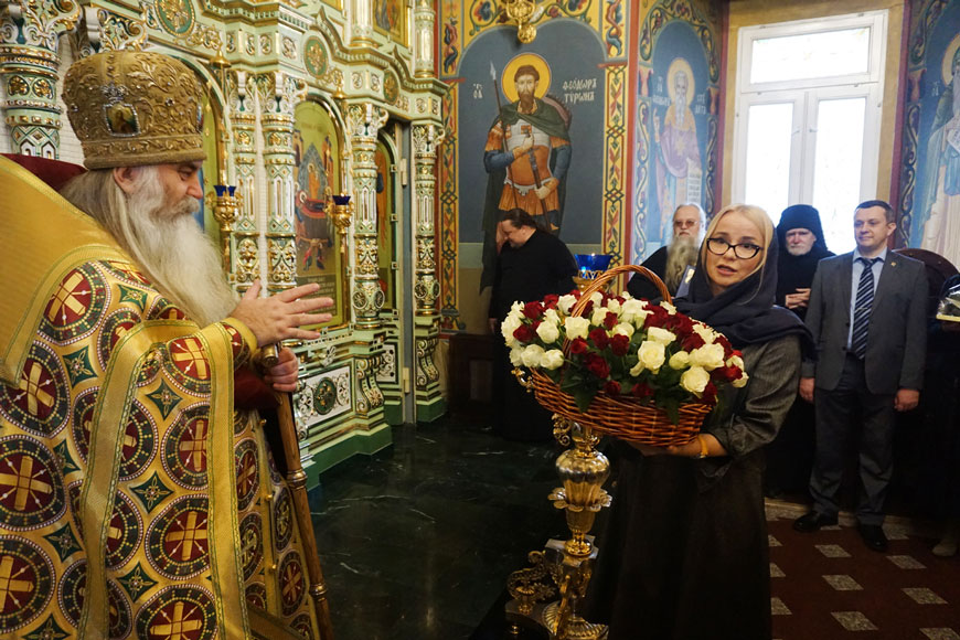 Затем духовник монастыря игумен Вассиан (Бирагов) зачитал поздравительный адрес от Его Высокопреосвященства, Высокопреосвященнейшего Георгия, митрополита Нижегородского и Арзамасского: