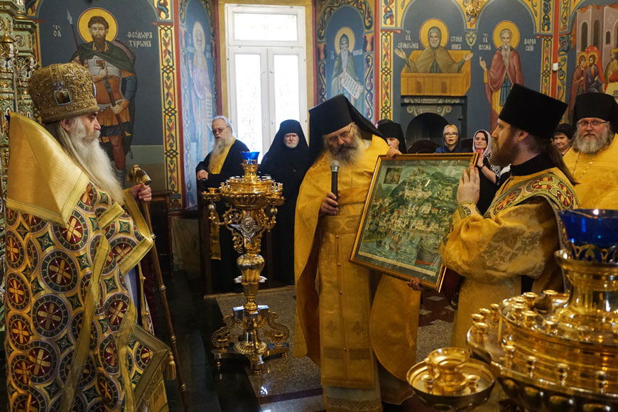 Постригшись в ангельский образ, Вы принесли Богу обеты, которые со тщанием исполняете по настоящее время. Предстоя у Престола Царя славы, Вы в течение долгих лет неустанно служите Матери-Церкви, воссылая молитвенные прошения о всех и за вся. Являясь настоятелем Вознесенского Печерского мужского монастыря славного града Нижнего Новгорода, Вы по-отечески радеете о вверенных попечению клириках, благоукрашаете и развиваете древнюю обитель, уделяете должное внимание внятному чтению и пению за богослужением.