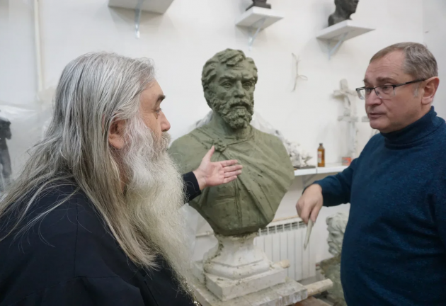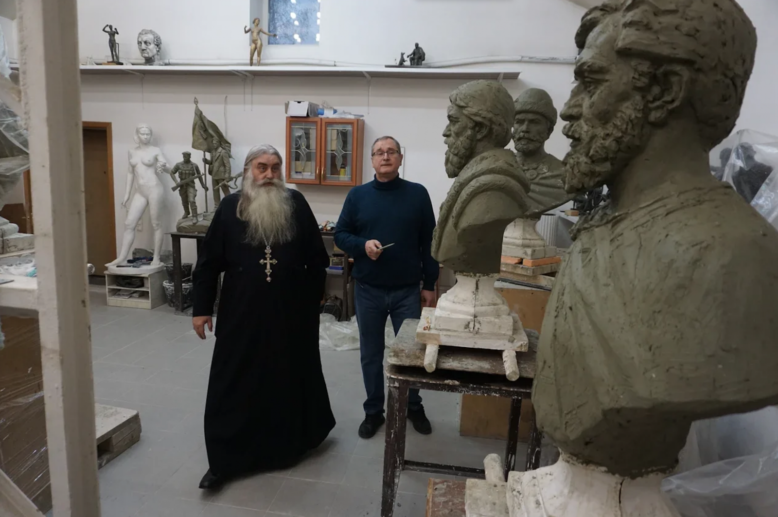 Также архимандрит Тихон посетил мастерскую скульптора Игоря Яворского, где находятся на изготовлении ещё три бюста Великих князей - Всеволод Большое Гнездо, Всеволод Ольгович и Мстислав Владимирович.