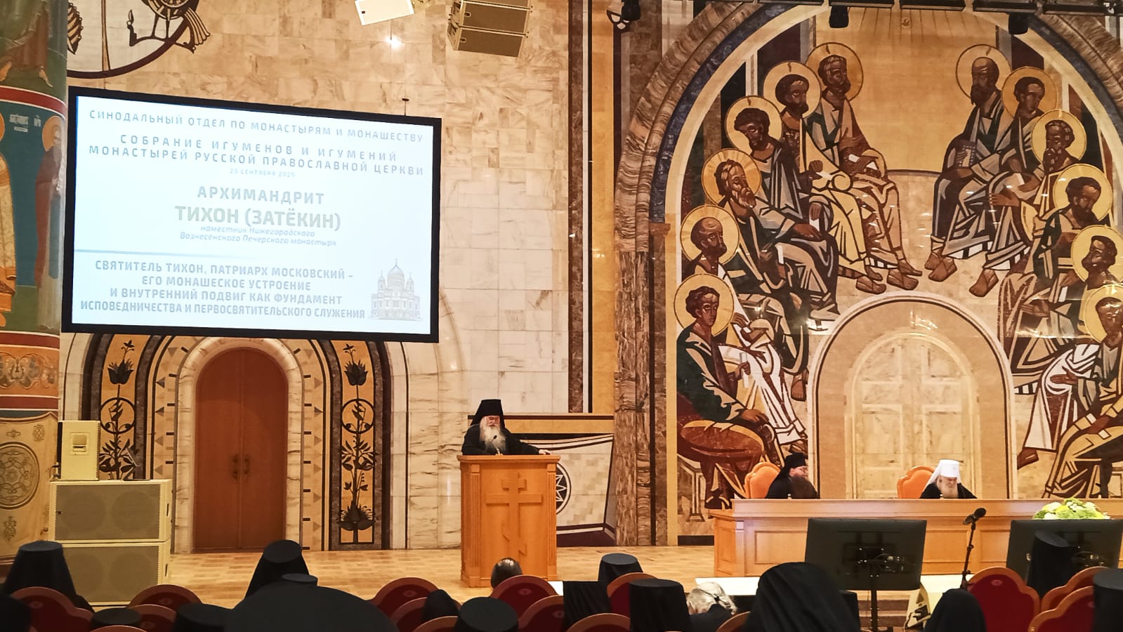Доклад настоятеля Нижегородского Печерского Вознесенского мужского монастыря архимандрита Тихона (Затёкина) «Святитель Тихон, Патриарх Московский ‒ его монашеское устроение и внутренний подвиг как фундамент исповедничества и Первосвятительского служения» стал данью памяти выдающегося Первоиерарха Русской Церкви и святого исповедника, сто лет со дня блаженной кончины и 160 лет со дня рождения которого исполнилось в 2025 году.