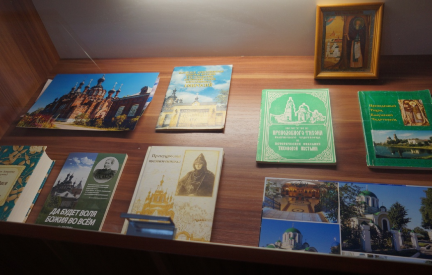 В связи с тем, что одной из целей ИППО всегда была помощь в организации путешествий по святым местам, Ольга Евсюкова из личной библиотеки выставила несколько десятков книг, расположение которых в витринах предлагало определённый маршрут по русским монастырям, начиная из Тулы.