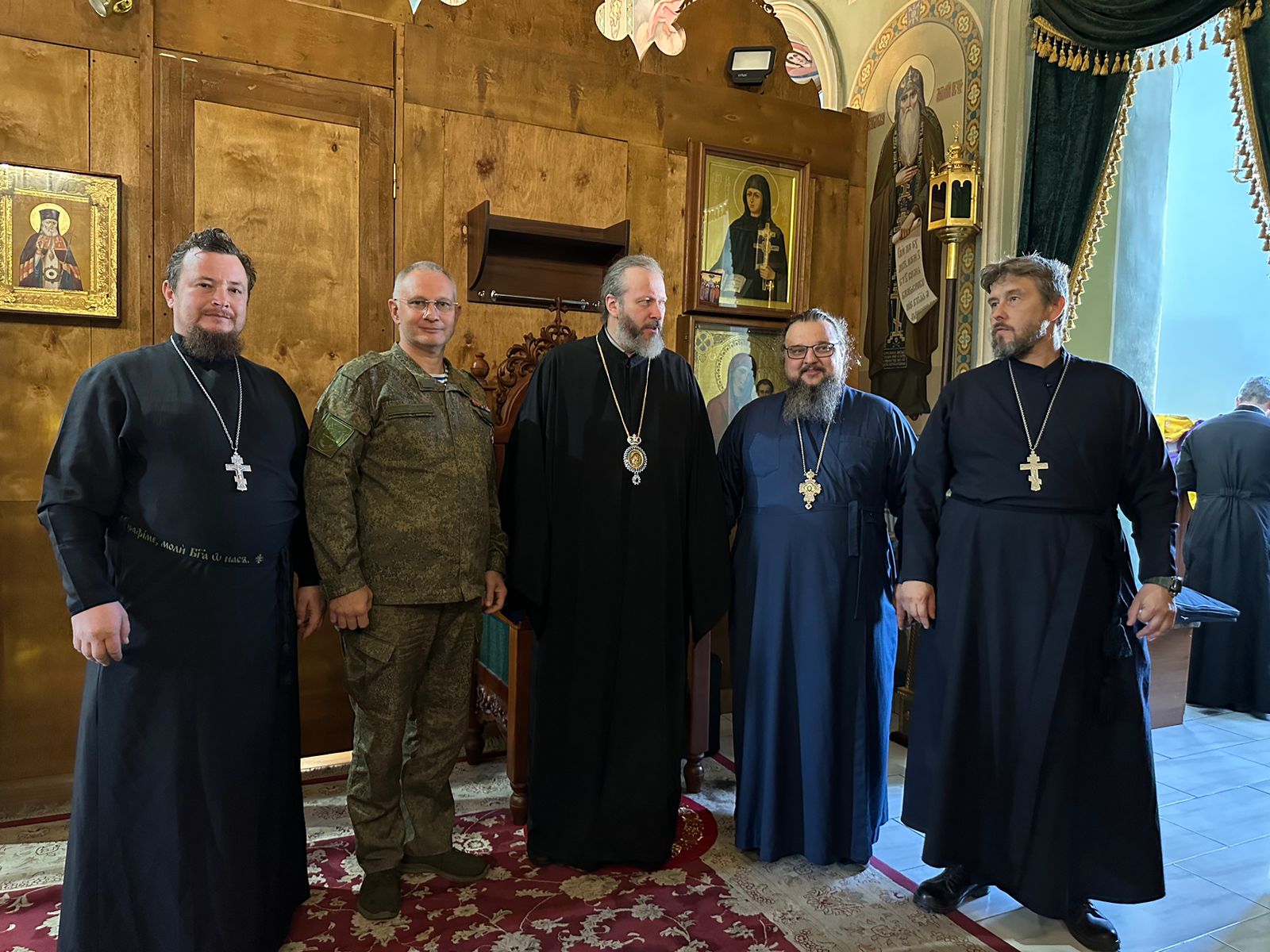 После архиерейской службы владыка Ефимий пригласил начальника конвоя в алтарную часть храма и выразил глубокую признательность Председателю ИППО Сергею Степашину и действительным членам ИППО - Владимиру Бергу и военному священнику иерею Дионисию (Долганову), сопровождавших Святую икону под руководством главного военного священника СВО протоиерея Петра (Гриценко). Он лично доставлял её и служил с ней в военных подразделениях, находящихся на линии соприкосновения с противником, для окормления российского воинства Иерусалимской Святыней.