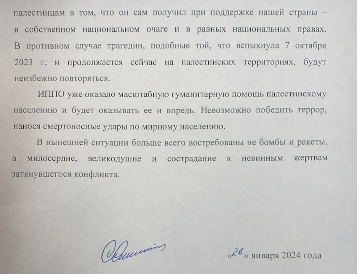 Заявление Совета ИППО о поддержке позиции Почетного члена ИППО, Министра иностранных дел Российской Федерации С.В.Лаврова в ходе состоявшегося 23 января 2024 года заседания Совета Безопасности ООН в Нью-Йорке по ситуации на Ближнем Востоке, включая палестинский вопрос.
