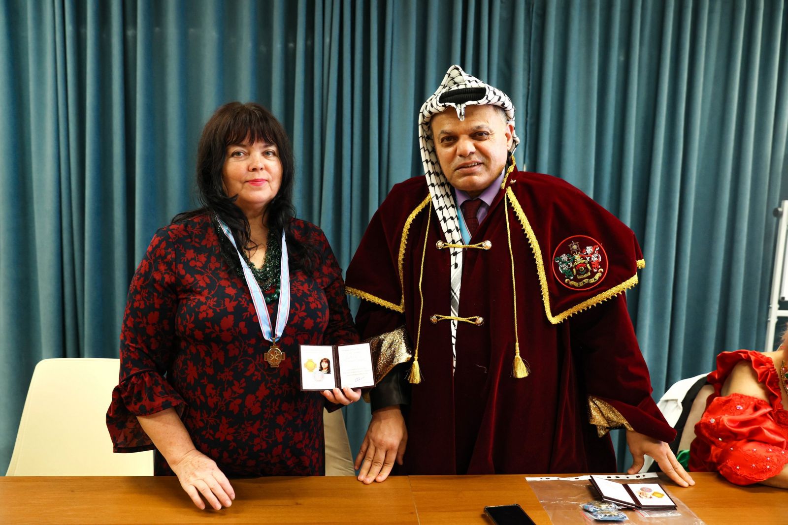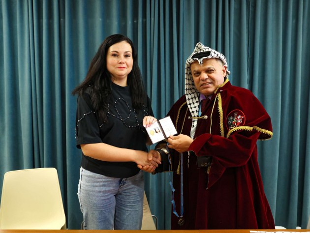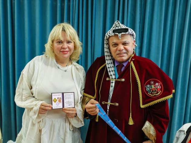 Доктор Бассам Фахти Аль-Балауи торжественно вручил знаки и удостоверения действительных членов ИППО вновь избранным членам Общества: Орловой О. В., (художник- преподаватель, член союза художников РФ, г Кирово-Чепецк), Балашовой О. Н. (художник - преподаватель, член союза художников РФ, г. Кирово-Чепецк), Васильевой Т. С. (фотограф, г Москва).