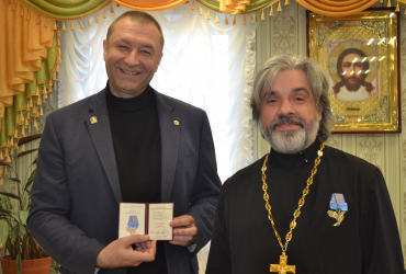 Сергей Степашин вручил иеромонаху Фотию (Мочалову) благодарственную грамоту Общества