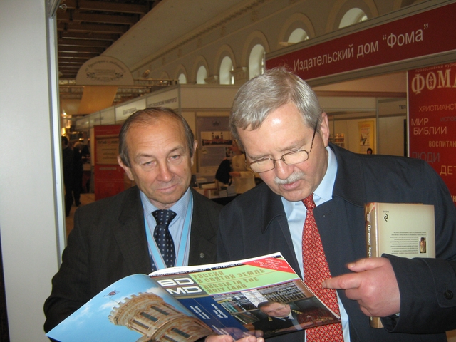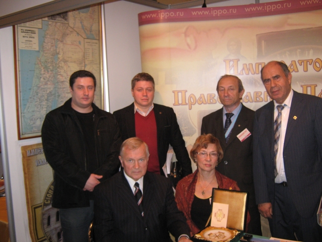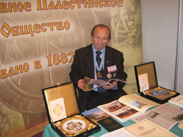 ![]() Стенд Императорского Православного Палестинского Общества на выставке-форуме «Православная Русь-2009». Управляющий делами ИППО М. И. Калинин |