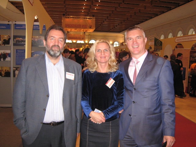 ![]() Гость стенда ИППО вице-президент Фонда Андрея Первозванного и Центра Национальной Славы, член ИППО М. И. Якушев (справа). В центре: член ИППО Г. Г. Монастырева, одна из организаторов стенда ![]() Управляющий делами ИППО М. И. Калинин знакомит с материалами стенда ИППО Чрезвычайного и Полномочного посла РФ А. В. Вдовина |