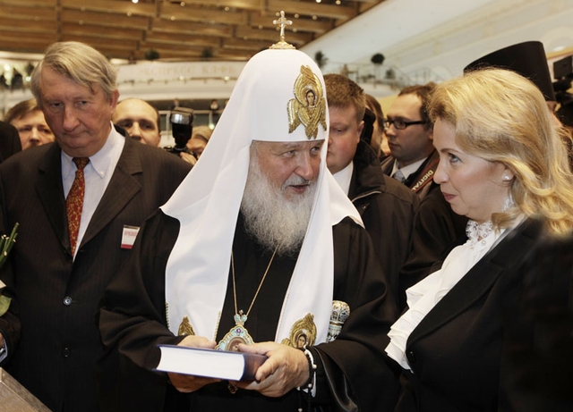 ![]() Святейший Патриарх Кирилл и супруга президента России С. В. Медведева осматривают стенды выставки ![]() VIII церковно-общественная выставка-форум «Православная Русь — к Дню народного единства» в день открытия. Фото: Патриархия.ру |