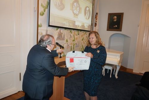Затем слово было предоставлено кандидату исторических наук, научному сотруднику Института всеобщей истории РАН, члену Совета ИППО, председателю Наблюдательного совета фонда "Елисаветинско-Сергиевского просветительского общества" (ЕСПО) Анне Витальевне Громовой, которая поблагодарив Николая Николаевича за интересный рассказ и глубокий анализ, подарила ему на память "дармштадтский портфель", который получили все участники научной конференции, прошедшей в рамках юбилейных торжеств на родине великой княгини Елизаветы Федоровны - в немецком Дармштадте.