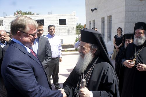 Из Иерусалима прибыл Блаженнейший Патриарх Святого града Иерусалима и всей Палестины Феофил III. Сергей Вадимович тепло поблагодарил Блаженнейшего Патриарха за то, что он откликнулся на приглашение Императорского Православного Палестинского Общества принять участие в церемонии и придал своим присутствием особую значимость столь важному событию.