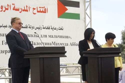 Г-жа В. Бабун напомнила о высокой роли знаний и образования в деле государственного строительства и формирования человека как личности. Она назвала строительство школы новым звеном в цепи уникальных отношений, которые связывают Палестину и Россию. Отдельные слова благодарности она высказала в адрес "неизвестных солдат", т.е. тех людей, которые вложили много своих сил в проект, но имена их остаются не известными широкой общественности.