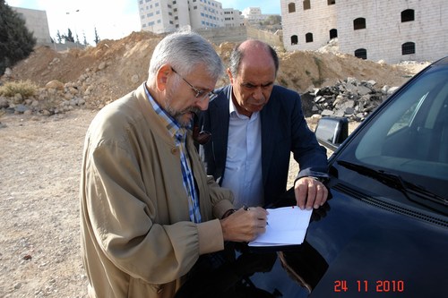 Представитель инвестора Станислав Таслицкий и председатель Вифлеемского отделения ИППО Дауд Матар на участке ИППО в Вифлееме