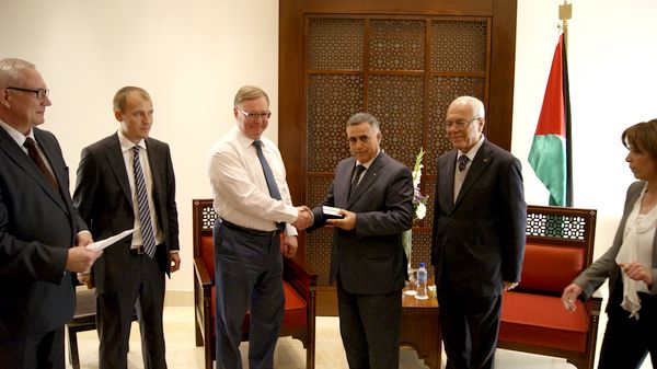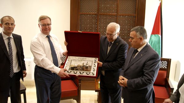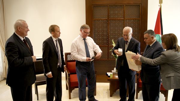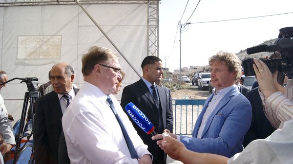 После церемонии закладки школы российская делегация отправилась в Президентский дворец в Вифлееме, где состоялась рабочая встреча с генеральным секретарем Президентства Государства Палестина Т. Абдеррахимом.