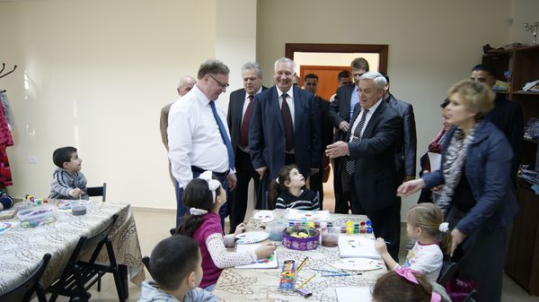 Гости ознакомились с организацией работы Российского центра науки и культуры (Россотрудничество), размещенном на части площадей Центра ИППО. В это время шли занятия в кабинете русского языка, в студии изобразительного искусства и музыкальные занятия. Дети с удовольствием пообщались с представителями далекой России, разговор шел не только на арабском языке, но и на русском. Одна девочка рассказала забавную историю про клоуна, которого она рисовала.