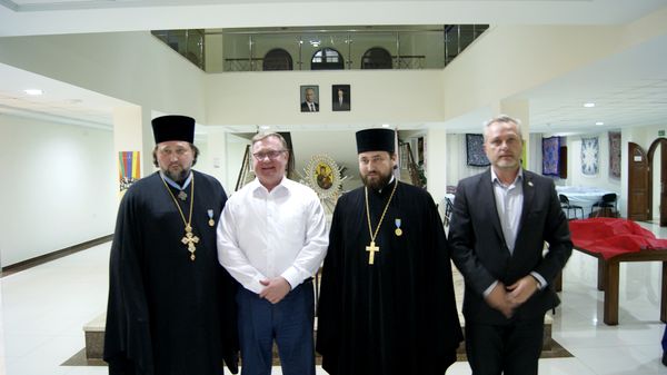 На память о теплой встрече Председатель ИППО подарил о. Роману и игуменье Моисее Евангелие на четырех языках — старославянском, русском, немецком и английском. В дар обители был подарен кубок с символикой России. Для архиепископа Берлинского Марка Сергей Вадимович попросил отца Романа передать картину из натурального камня.