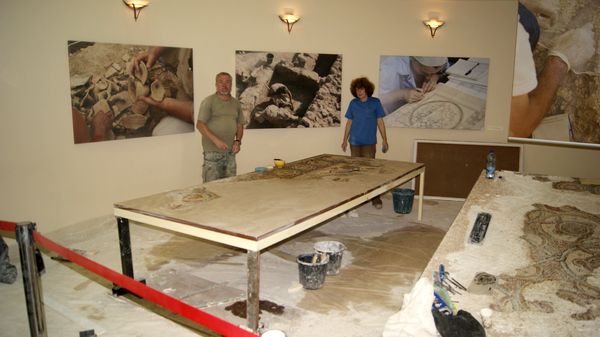 Тема русских археологических исследований Святой Земли получила продолжение в помещении музея палестинских древностей, где члены делегации рассмотрели армянские мозаики VI века с изображением животных и множество исторических артефактов, найденных отцом Антонином во время археологических работ на различных русских участках.