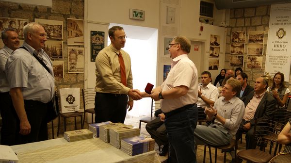 Вечером российская делегация посетила Культурно-деловой центр ИППО, где состоялась встреча с членами Вифлеемского отделения Императорского Православного Палестинского Общества и нашими соотечественниками, проживающими в Вифлееме и других городах Палестины. Они выразили благодарность за появление в городе очага русской культуры.