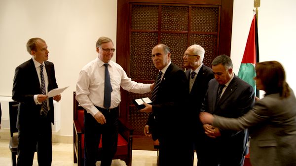 Тайиб Абдеррахим выразил благодарность руководству Российской Федерации и Сергею Вадимовичу Степашину как Председателю Императорского Православного Палестинского Общества, имеющему в регионе проверенный временем авторитет, за поддержку палестинского народа и культурные проекты, которые активно реализуются в последнее время на родине Христа. Кроме того, он сообщил, что сердечно рад предоставившейся ему возможности лично вручить Сергею Степашину паспорт Почетного гражданина Палестины и фрачный значок для ношения на лацкане пиджака. Знак, удостоверяющий звание Почетного гражданина Палестины, был вручен в январе прошлого года Махмудом Аббасом, находившимся с визитом в Москве.