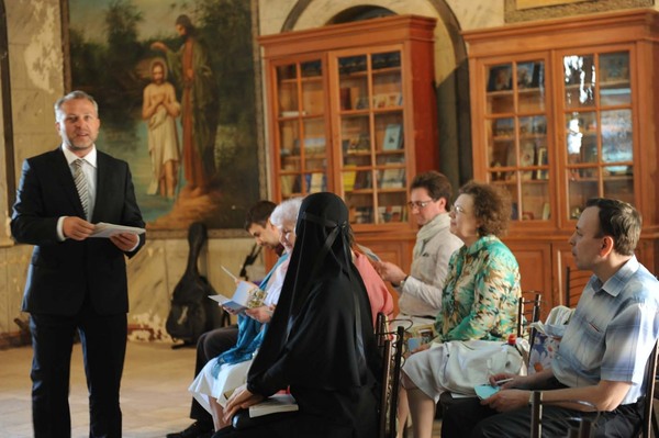Глубокоуважаемый отец Исидор, председатель Иерусалимского отделения ИППО Павел Викторович Платонов, уважаемый профессор Олег Алексеевич Колобов, сестры, дорогие члены делегации Нижнего Новгорода, дамы и господа, я с глубоким удовлетворением и радостью передаю вам большой привет от нашего российского посла Петра Владимировича Стегния. Мы вчера с ним говорили о предстоящем вашем мероприятии, он просил передать вам самые теплые слова, самые искренние радостные чувства по поводу проведения этого научно-исторического семинара. Как вы знаете, он сам историк, доктор наук, и очень хотел бы присутствовать на этом мероприятии, но государственные дела не позволяют ему этого. Петр Владимирович заверил, что душой он здесь с нами, и будет рад узнать о результатах семинара, участникам которого желает успеха.