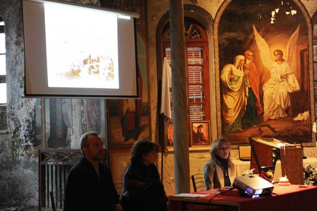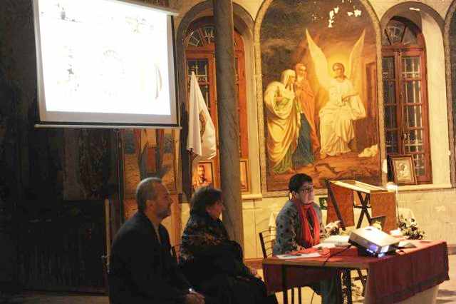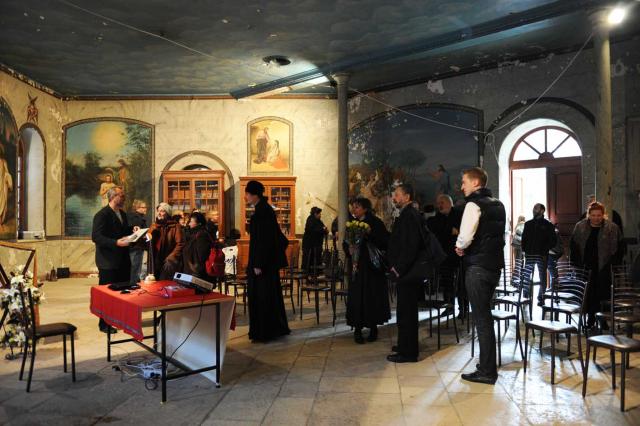 Первая часть мероприятия проходила в Российском культурном центре в Тель-Авиве, где собрались представитель Патриарха Иерусалимского архимандрит Евсевий, представители Русской Духовной Миссии в Иерусалиме, монахини Русской Православной Церкви заграницей из Гефсиманского монастыря, председатель Правления ассоциации «Дружбы и сотрудничества граждан Израиля и России» Павел Аронсон, представители израильской общественности, журналисты.