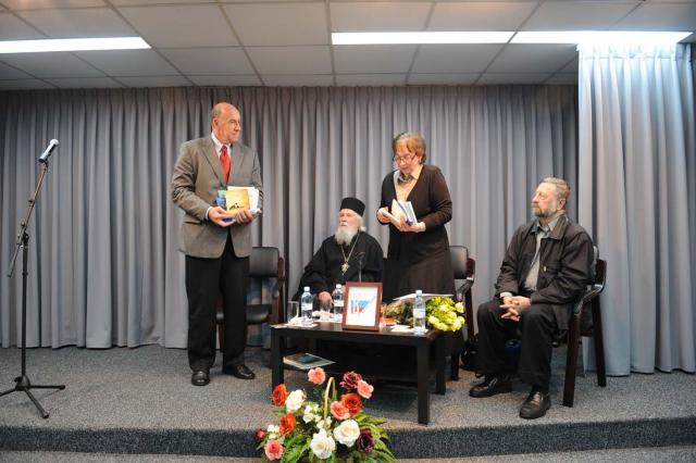 ![]() Представитель Иерусалимского Патриарха архимандрит Евсевий приветствует участников круглого стола ![]() Выступает председатель Иерусалимского отделения ИППО П. В. Платонов ![]() Выступает секретарь Иерусалимского отделения ИППО Т. Е. Тыжненко |
