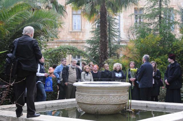 С особым чувством воспринималось слушателями, находящимися на месте давнего события, описание празднования 25-летия ИППО на Сергиевском подворье: «В три часа дня в садике Сергиевского подворья загремела музыка: играл военный турецкий оркестр, присланный на торжество воинским начальником Иерусалима. На звуки музыки к русским постройкам со всех концов св. города стали собираться арабы, греки и евреи. Очень быстро на соседней площади образовалось импровизированное гулянье, в котором приняла участие молодежь и старики, мужчины и женщины. Скопление гуляющих было так велико, что военный оркестр должен был расположиться в более централизованном месте – в садике возле Троицкого собора. После обеда в столовой первого класса, все участники палестинского юбилея были приглашены в сад Сергиевского подворья, где был сервирован десерт и вечерний чай. В дружеской, родственной беседе провели вечер русские деятели на далекой чужбине, делясь воспоминаниями о прошлой деятельности Палестинского Общества и выражая свои искренние пожелания и надежды относительно дальнейшего развития этого дорого для всех многополезного учреждения. С русскими деятелями солидарны были в мыслях и чувствах учителя и учительницы из арабов, присутствовавшие на юбилейном празднике Палестинского Общества. Один из них — г. Атыя, старейший преподаватель арабского языка в Бейт-Джальской семинарии выразил мысли и чувства арабского народа по отношению к Палестинскому Обществу в специально написанной им для юбилея оде на арабском языке, которая и была прочитана вечером 21 мая, в присутствии всех участников торжества. В оде самым восторженным образом прославлялась плодотворная деятельность Палестинского Общества, выражалась благодарность Обществу со стороны арабского народа и высказывались искренние пожелания относительно его будущего прогресса. Прочитанная с увлечением и глубоким чувством, ода г. Атыя произвела на всех знающих арабский язык наилучшее впечатление».