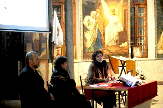 С приветственным словом к участникам международного научного мероприятия обратился представитель Иерусалимского Патриарха архимандрит Евсевий, который отметил, что связи между Византией, Грецией и Иерусалимской Патриархией существуют с момента Крещения Руси через Византию, что сразу же положило начало традиции русского паломничества в Святую Землю. Также греческие Иерусалимские патриархи посещали Святую Русь и искали там помощь моральную, духовную и, в том числе, финансовую, поскольку святые места и Гроб Господень были в опасности. В коммунистический период связи между Грецией, Иерусалимом и Россией были прерваны, но после посещения Святой Земли Патриархом Алексием I между патриархиями возникла договоренность посылать с Святой Земли учиться в Россию священников. «Нам необходимо усилить связи между Греций, Иерусалимской Патриархией и Россией. Я хотел передать вам патриаршее благословение нашего Иерусалимского Патриарха Феофила, который поручил мне прийти сюда к вам. Вчера у Гроба Господня мы молились за Россию, пусть сегодняшнее заседание пройдет с успехом»,— сказал архимандрит Евсевий.