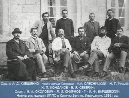 Леонид Андреевич продемонстрировал присутствующим фото участников археологической экспедиции Императорского Православного Палестинского Общества под руководством академика Н. П. Кондакова 1891–92 гг., результаты которой были изложены им в сборнике «Сообщения ИППО» в 1892 году, а затем и в капитальном труде «Археологическое путешествие по Сирии и Палестине». Экспедиция прошла о маршруту Константинополь — Афины — Бейрут — Гауран — Заиорданье — Иерусалим. В архиве ИППО хранится 1 000 фотографических снимков с редчайших памятников древности, свыше 50 акварелей и 20 планов. Побывала экспедиция и в Иерихоне, а один из ее участников — молодой 22-летний ученый Я. И. Смирнов 12–21 ноября 1891 г. провел полевые работы на иоасафовском участке, принадлежавшем с 1886 года Императорскому Православному Палестинскому Обществу. Это были первые русские исследования византийского Иерихона. И вот спустя почти 120 лет российским археологам наконец-то удалось вернуться в Иерихон. Именно такой заголовок — «120 лет спустя» и предложил журналистам, присутствующим на пресс-конференции, Л. А. Беляев.