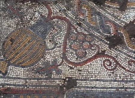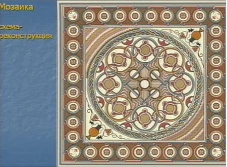 «Главная находка — это цветная мозаика 6-7-го века размером 3,6?3,6 м. Она сделана из цветных камешков, около 150 тысяч таких камешков ушло на нее, где-то семи-восьми цветов, оттенков конечно же больше. Сложная геометрия, много растительных сюжетов, христианские сюжеты, в частности вазы, из которых исходят лозы винограда — распространенный евхаристический символ»,— сказал Л. Беляев.
