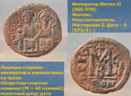 Датировать слои позволяют монеты. Были найдены около 200 монет, в основном византийских, начиная со 2 века. Некоторые из этих монет, в частности серебряных, потом пришли на Русь. Таким образом прослеживается ниточка, связывающая культуру Святой Византии со Святой Русью. «Почему важно изучать Палестину, зачем мы так далеко едем? Надо понимать, что корни Святой Руси уходят в историю Византии, невозможно понять историю Руси, не зная истории Византии»,— подчеркнул ученый.