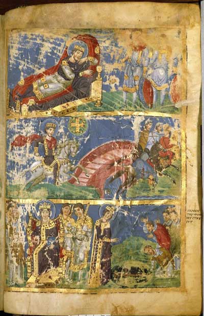 Деталь миниатюры «Сон Константина. Битва у Мильвийского моста. Обретение Честного Креста царицей Еленой».