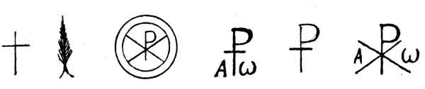 Изображения монограммы имени Христова и Креста нередко соединялись с другими символическими знаками, например, с изображениями якоря, рыбы, голубя, венка, ветвей и др.