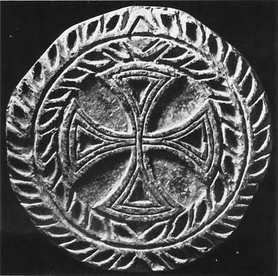 Равноконечные кресты с расширяющимися ветвями встречаются на древних предметах различного назначения: например, на глиняном резном штампе VI в. для просфоры[36], на глиняной ампуле VI в. из Сирии[37], причем крест обрамлен жемчужником, в точности повторяющим орнаментальный мотив обрамления рассматриваемого нами креста.