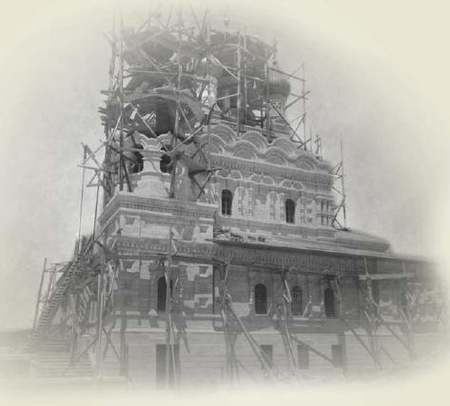 Храм был построен за три года, в его создании участвовала вся царская семья. Большую часть денег на строительство – 135 000 рублей – пожертвовал Александр III, по 15 000 выделил каждый из четырёх его братьев, ещё 5000 – их сестра Мария Александровна, герцогиня Эдинбургская. Представители придворной аристократии участвовали в украшении и обустройстве храма (5, с. 436–438), освящение состоялось в праздник Покрова, 1 октября 1888 года. Для участия в торжествах великий князь Сергий Александрович предпринял своё второе паломничество в Святую землю – на этот раз с супругой великой княгиней Елизаветой Фёдоровной и братом Павлом Александровичем.