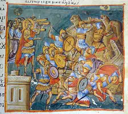[1]. Первый удар по расцвету Византии был нанесен в 614 году при нашествии персов под руководством Хозроя, которые беспощадно уничтожали храмы и монастыри. В 635 году в Палестину приходят арабы, завоевывая все византийские города, в том числе и Иерихон.